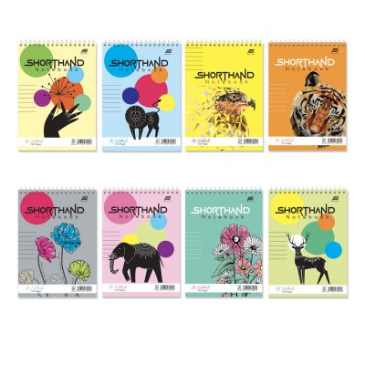 Variety of multi coloured shorthand top Spiral Note Books in different designs suitable for short notes, meeting notes and also in projects recording.